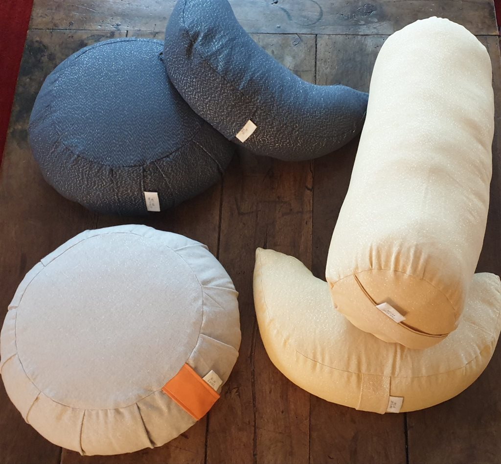 Guidée par la vieille machine à coudre de ma maman, la couture est devenue pour moi source de méditation. Aujourd’hui, mon atelier propose une gamme de créations uniques et locales : tapis de yoga, zafus, bolsters, croissants et demi-lunes, ainsi que des masques de relaxation à la lavande.